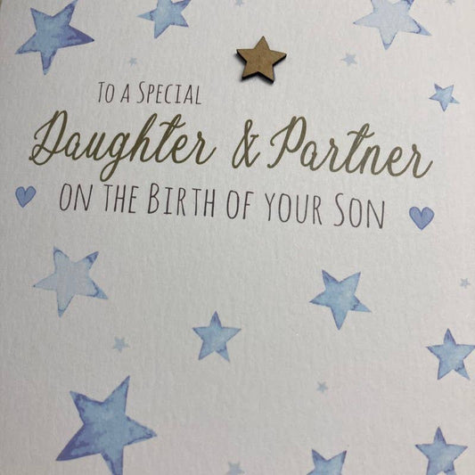 6 X Daughter & Partner - Birth of Son - Blue Stars (S518)