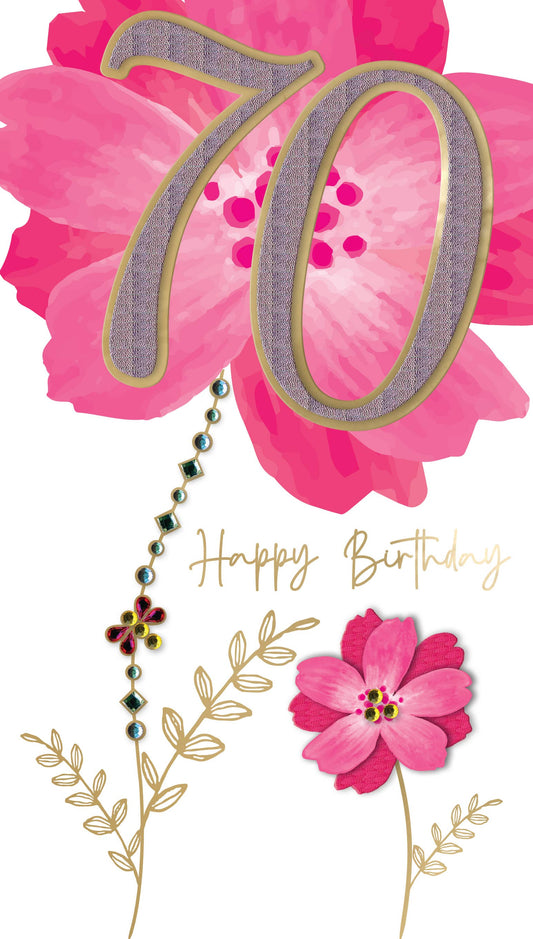 70th Birthday Milestone - Embossed Glossy Greetings Card