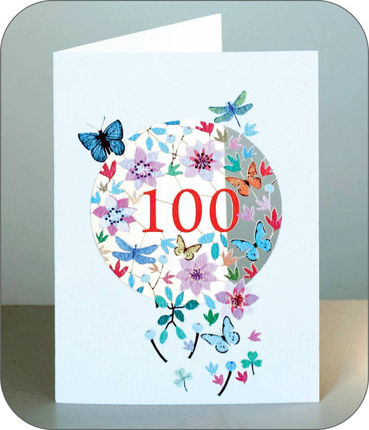100TH Age Birthday Card with Butterflies & Dragonflies
