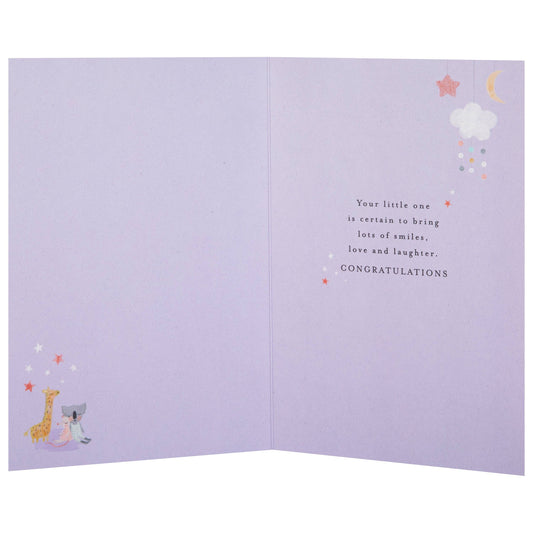 Lucy Cromwell Baby Girl Card with Crib & Toy Animals Design
