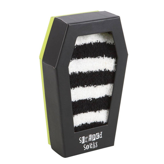 Gothic Striped Halloween Socks in Coffin Gift Box