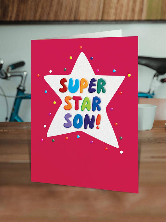Funny Birthday Card Embossed Greetings Card - Super Star Son