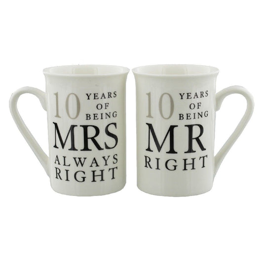 Amore Mug Set - Mr Right & Mrs Always Right 10 Years