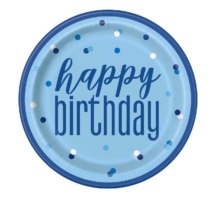 (8) 9IN GLITZ BLUE & SILVER DOTS PLATES