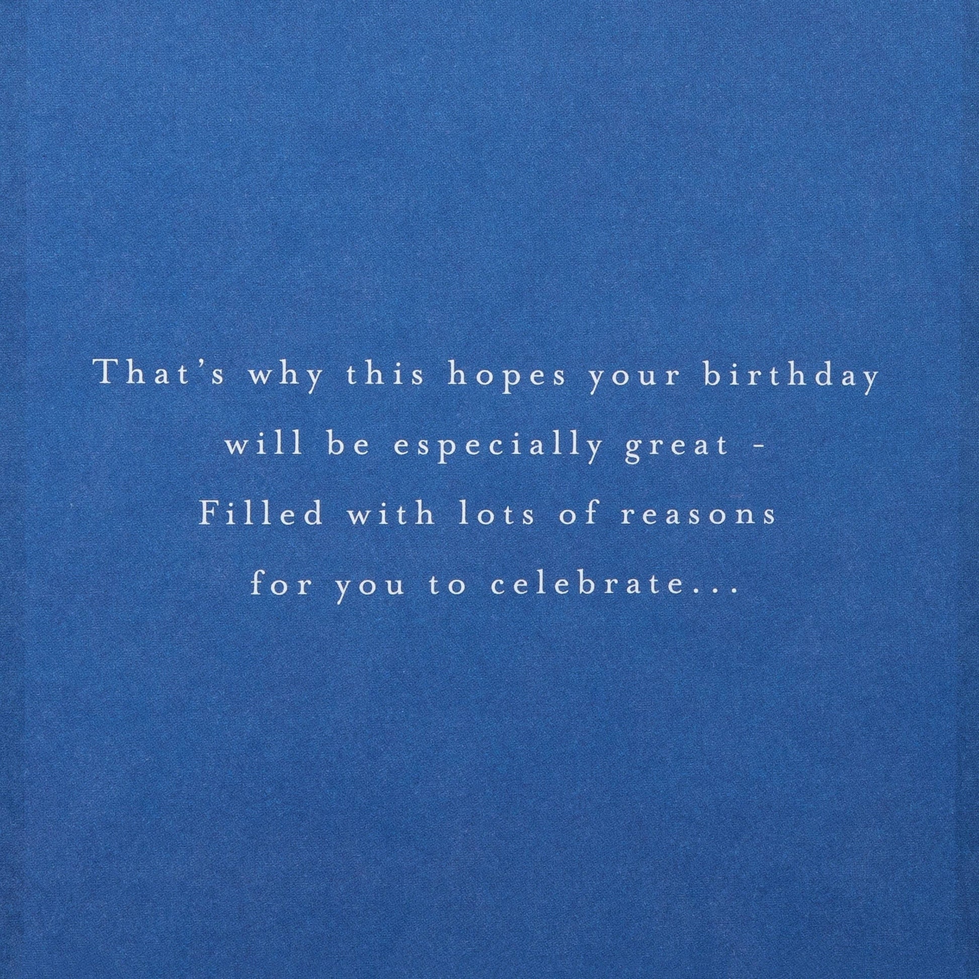 Message on front: For a Lovely Son on your birthday. It's always been so special to have a son like you who helps to make our family so happy all year through. It means a lot to think about the memories that we share and all the smiles and laughter that you bring each time you're there...