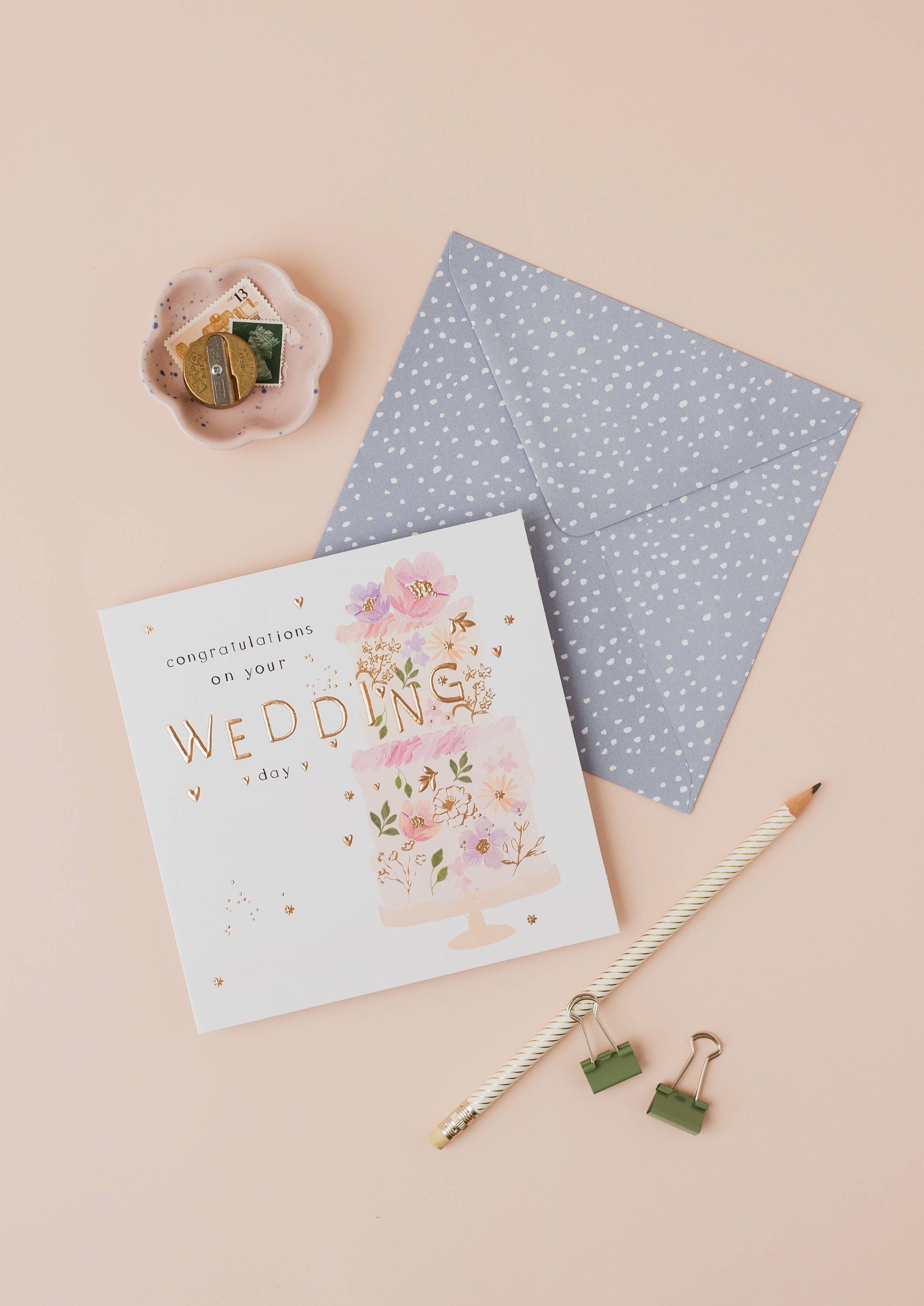 Perfectly pretty, Botanique is filled with hand-painted flowers, beautiful butterflies, botanical foliage and delicate linework. Scattered touches and oversized lettering in geo-fluted rose gold foil adds another gorgeous dimension to these stunning designs. Paired with a bespoke dotty envelope.