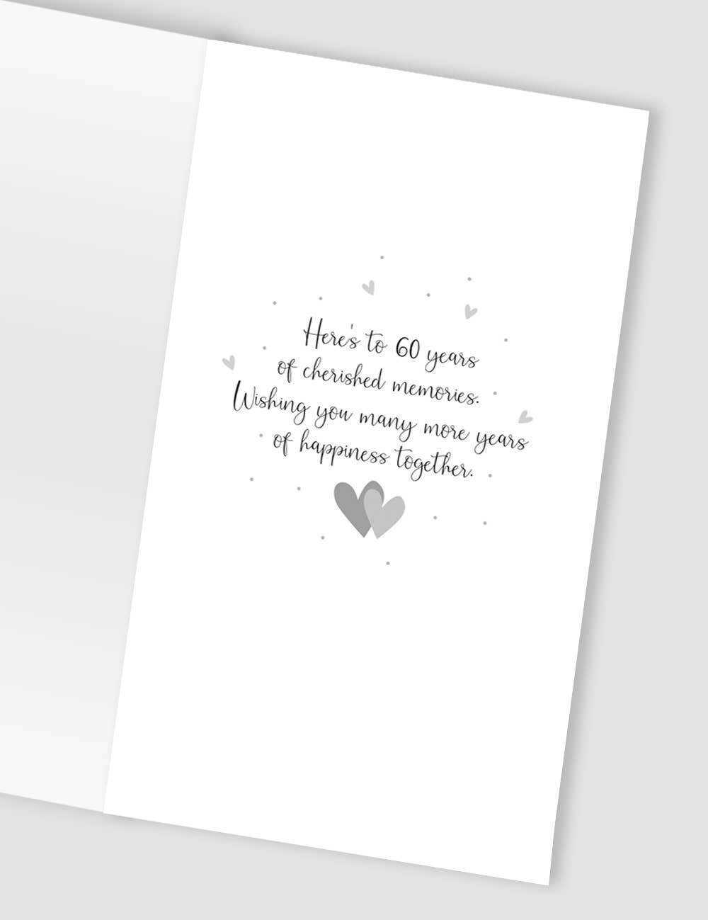 Message Inside Reads: Here's to 60 years of cherished memories. Wishing you many more years of happiness together.