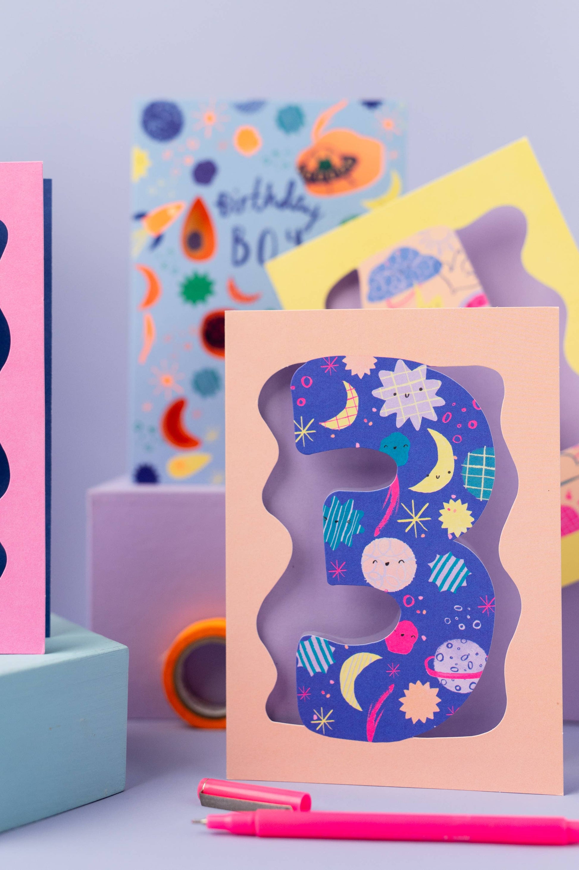 These cards feature to die for die-cuts, eye-popping neon ink and super fun patterns.