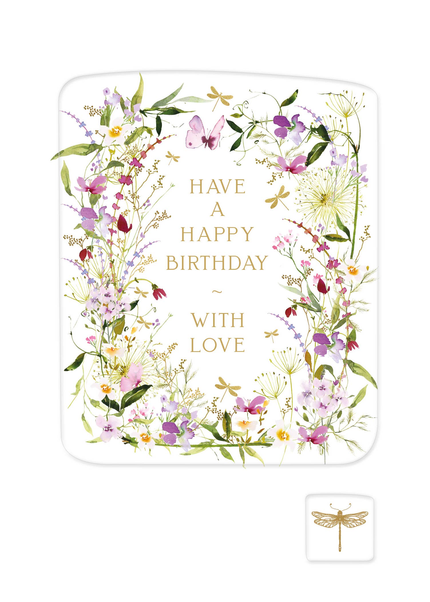 Unit/case of 6 cards - Flower Press is a beautiful range of delicate hand drawn water colour flowers placed in de-bossed panels giving the illusion of coming straight out of a traditional flower press. Gold foil text and foiled icons on a textured board sold with a craft envelope and great value at C50 7x5 133x184mm UK RRP £2.20. Page 3 text - Have a lovely day. 133x184mm