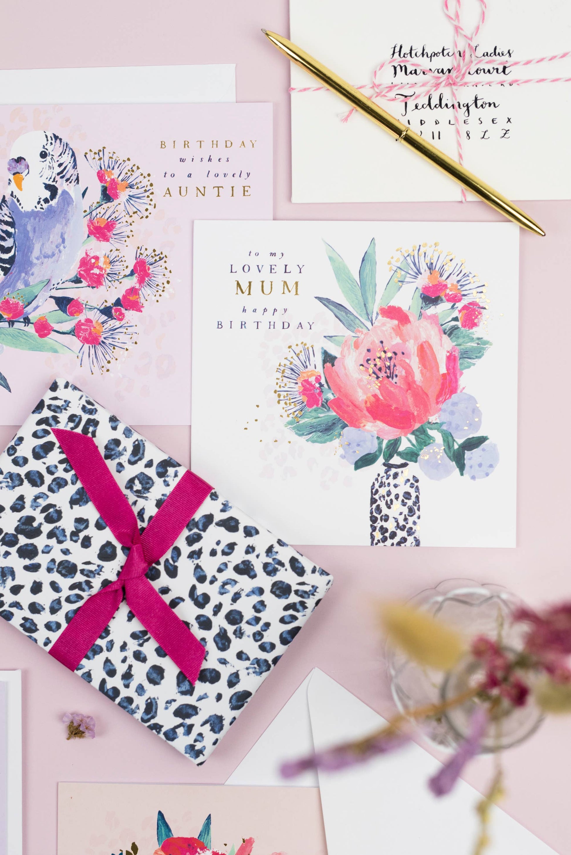 Lush & lively florals are mixed with dense jungle foliage in this maximalist collection. Finished with satin gold foil each card comes with a white envelope.
