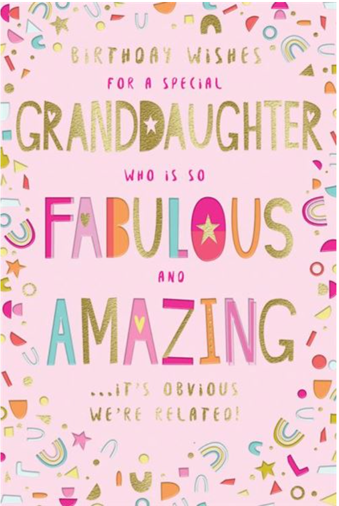 Introducing our GRANDDAUGHTER birthday card from Kingfisher Cards. This card is specially designed to convey your heartfelt wishes to your beloved granddaughter on her special day. We strive to offer unique designs, ensuring your message stands out. Our extensive collection allows you to express your sentiments in a more personal way. With Kingfisher Cards, you're not just sending a card, but a memorable experience.
