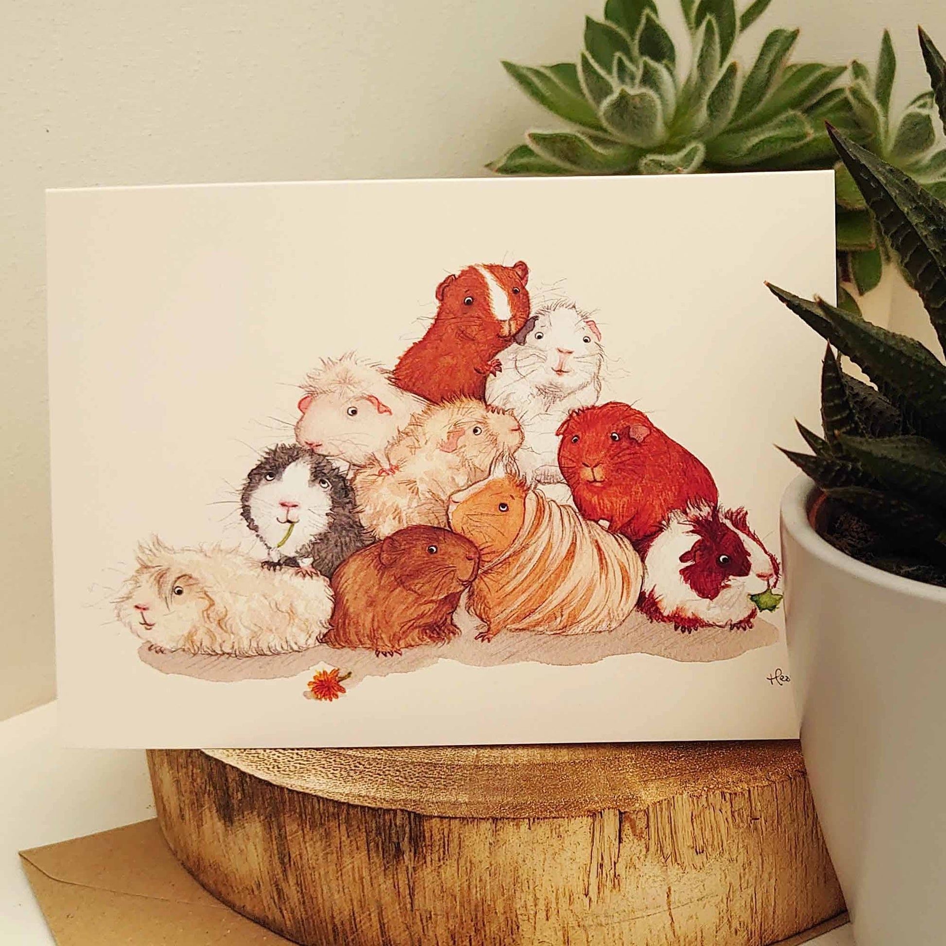 A card made from one of my original watercolour illustrations, This super cute pyramid of Guinea pigs card is perfect for the Guinea pig obsessed in your life or just a lovely card for any occasion
