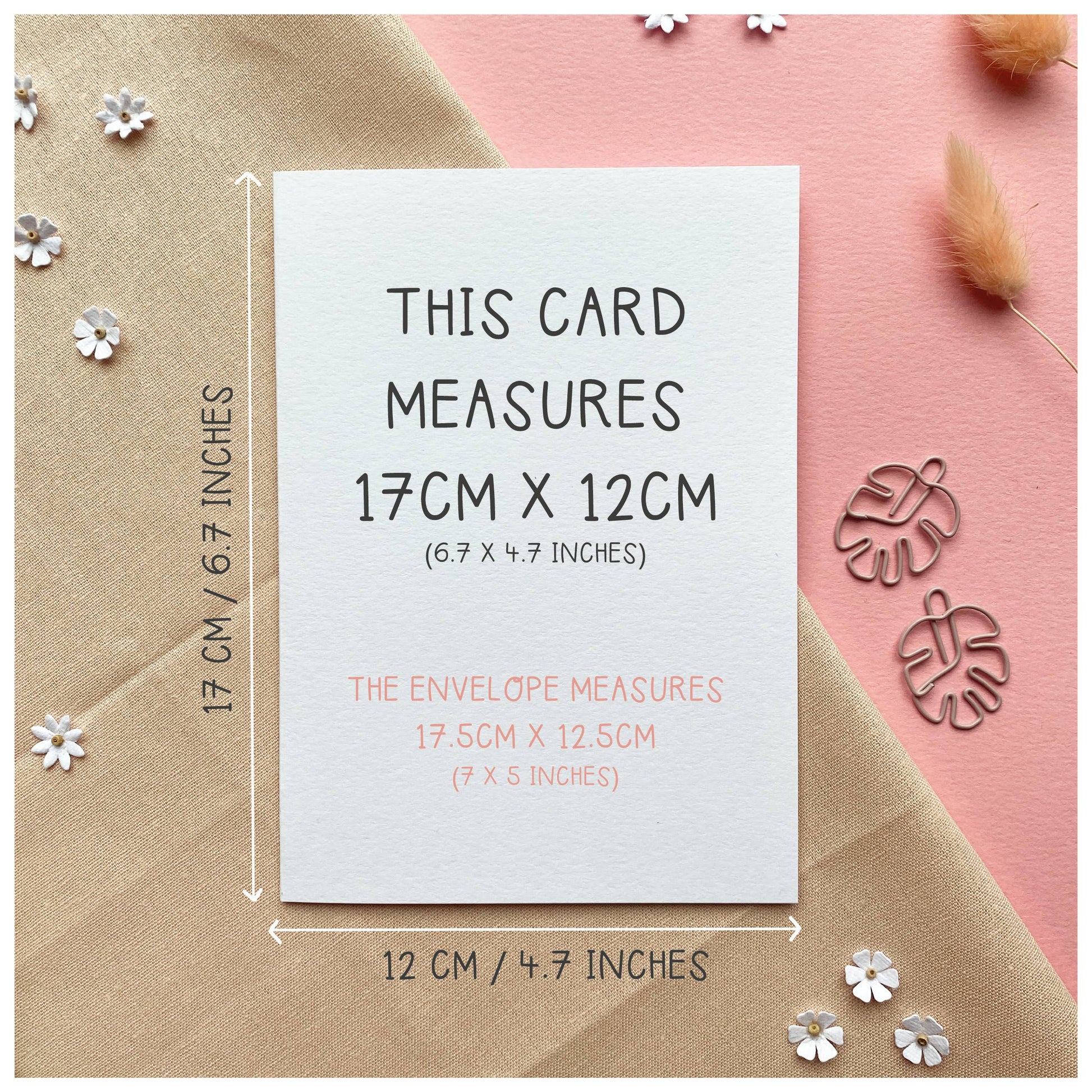This card measures A6 w:10.5cm x h:15cm, It is printed here in the UK in a planet-friendly factory, on 300gsm premium thick FSC Certified silk cardstock, and is paired with a Lavender Lilacenvelope.