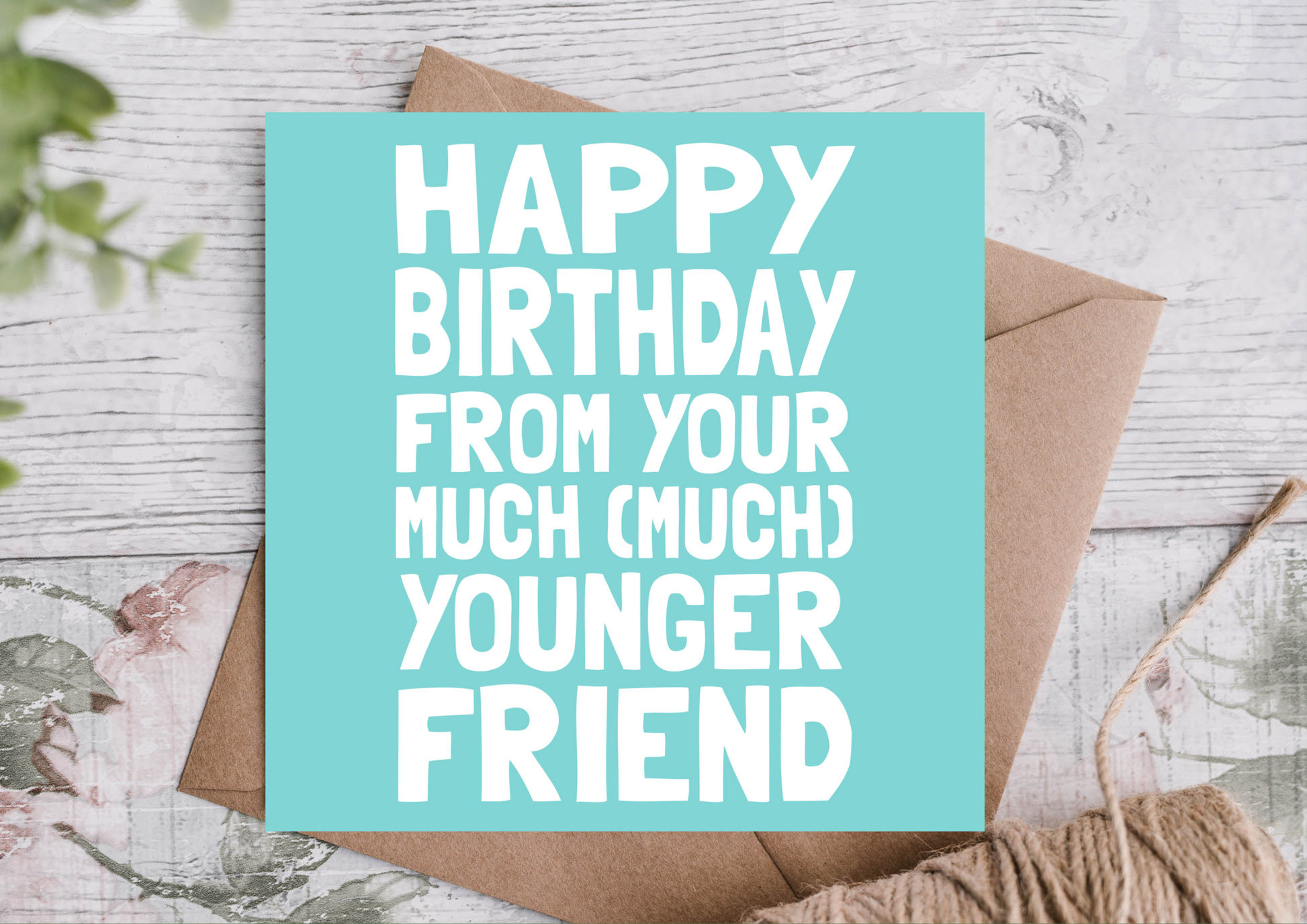 Product Name: Happy Birthday From Your Much (Much) Younger Friend Card / Funny Birthday Card / Birthday Card / Birthday Card / Eco Friendly Birthday Card