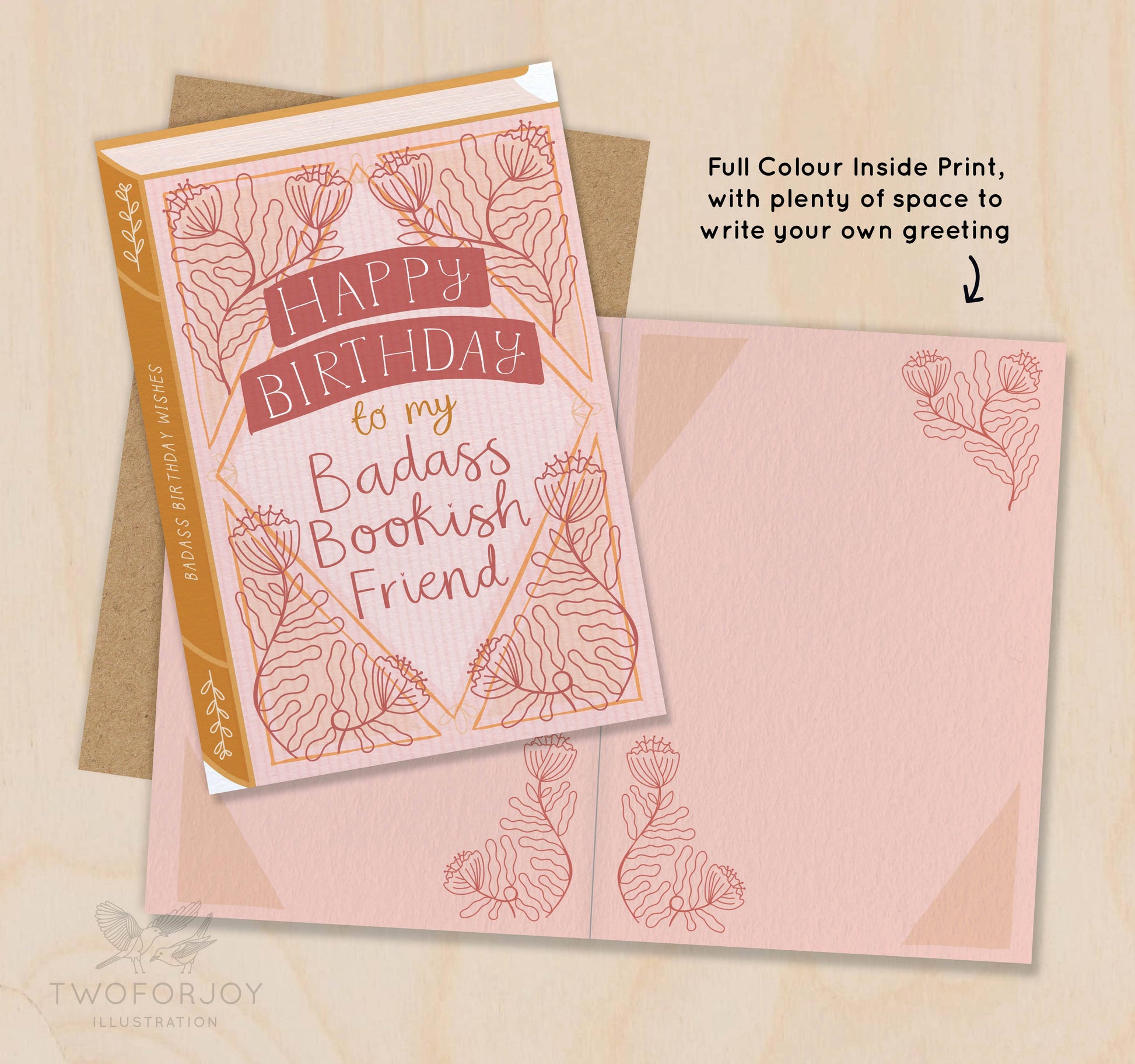 This card is for the book-loving friend who’s full of fire. Designed in rich sunset oranges with hand-drawn floral details, it’s bold, beautiful and totally badass.