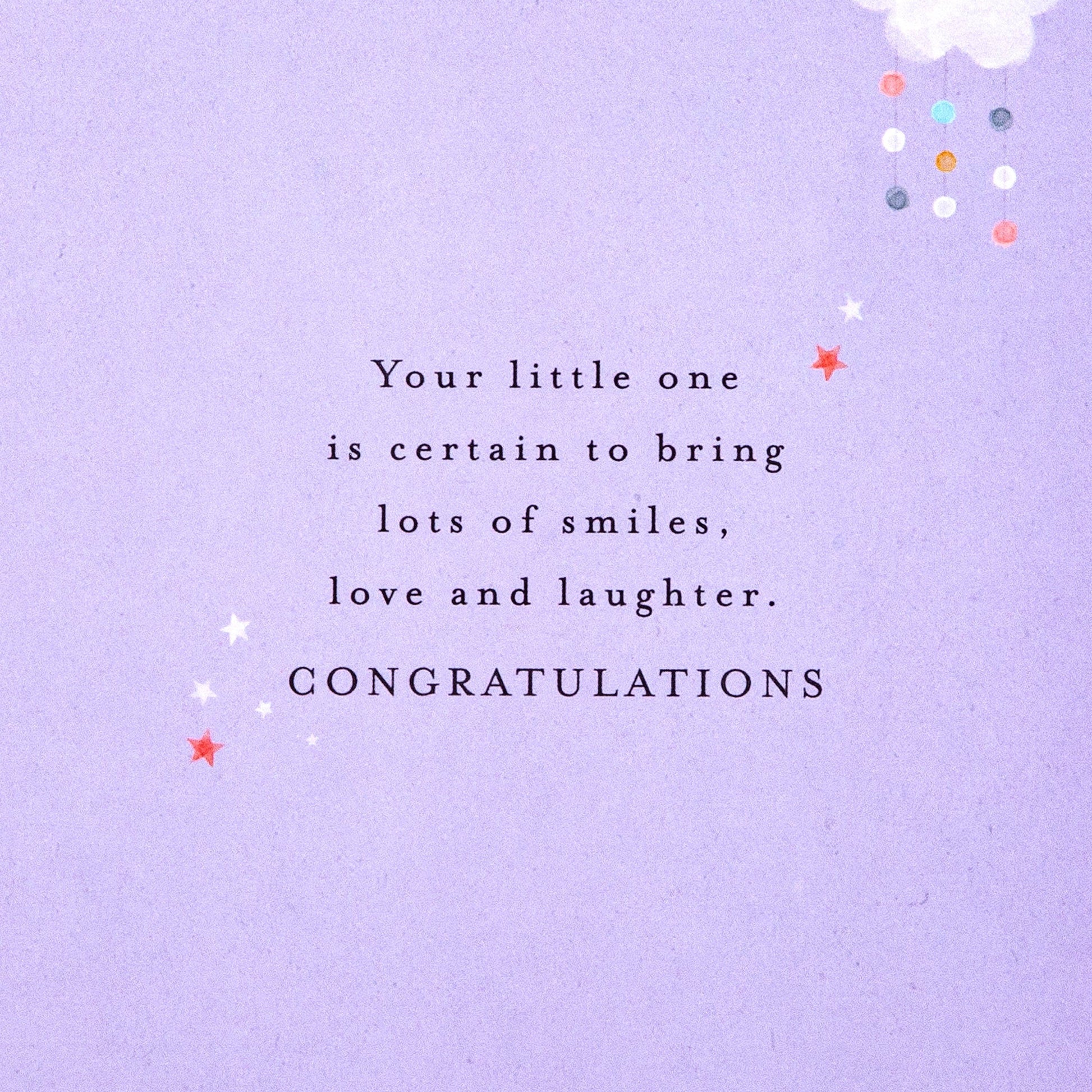 Message Inside Reads: Your little one is certain to bring lots of smiles, love and laughter. Congratulations