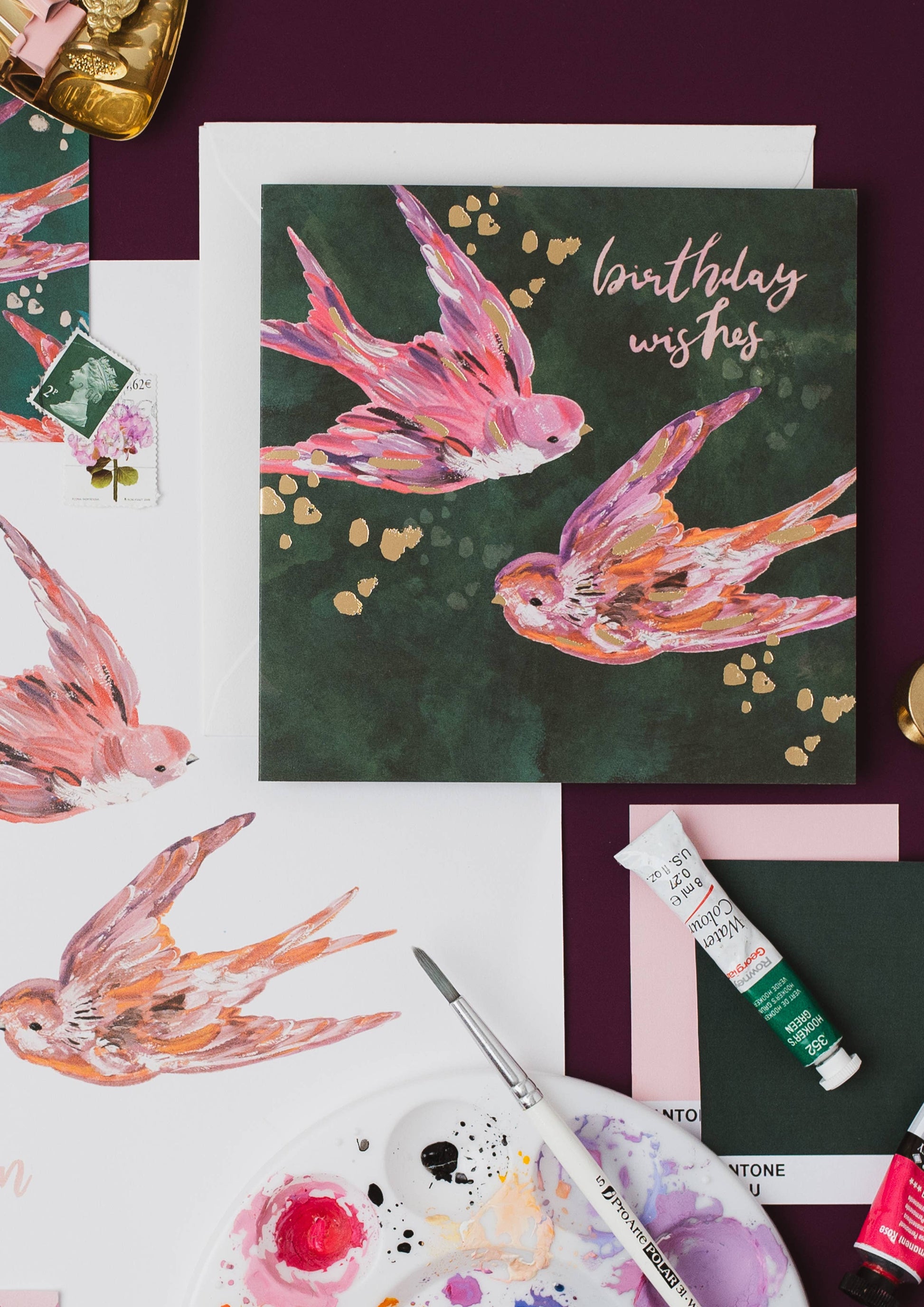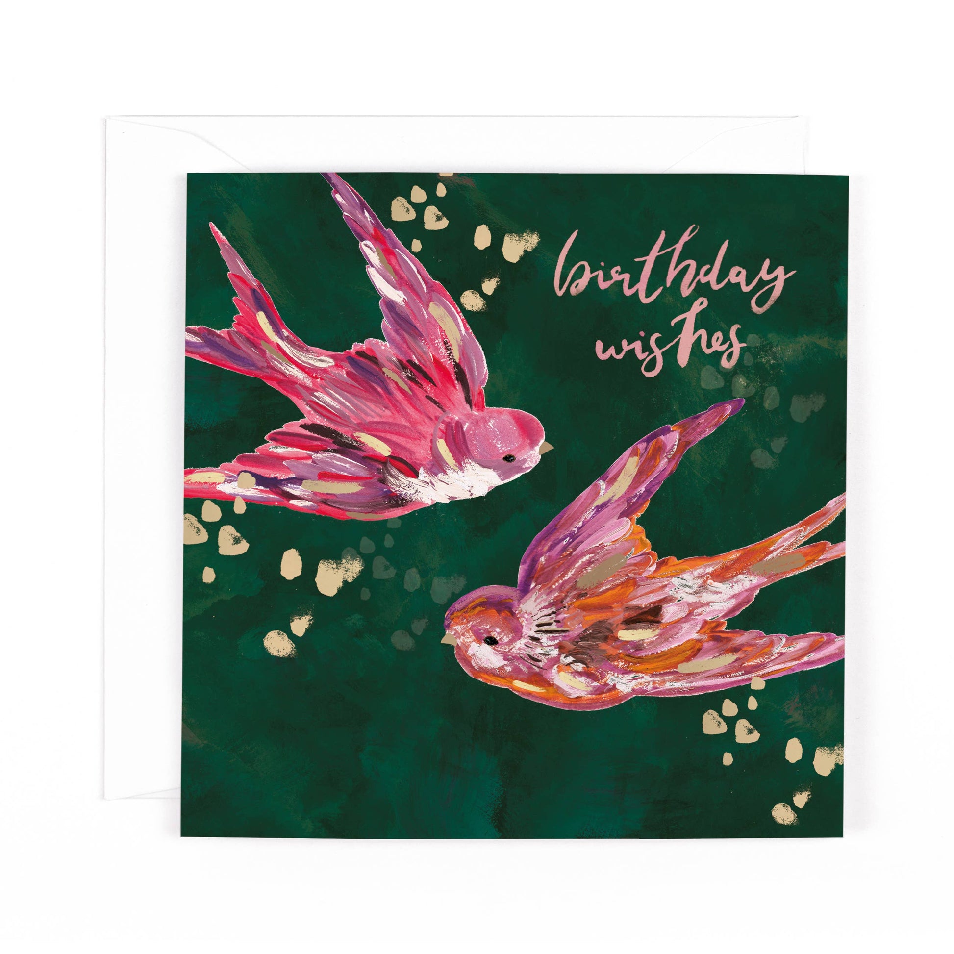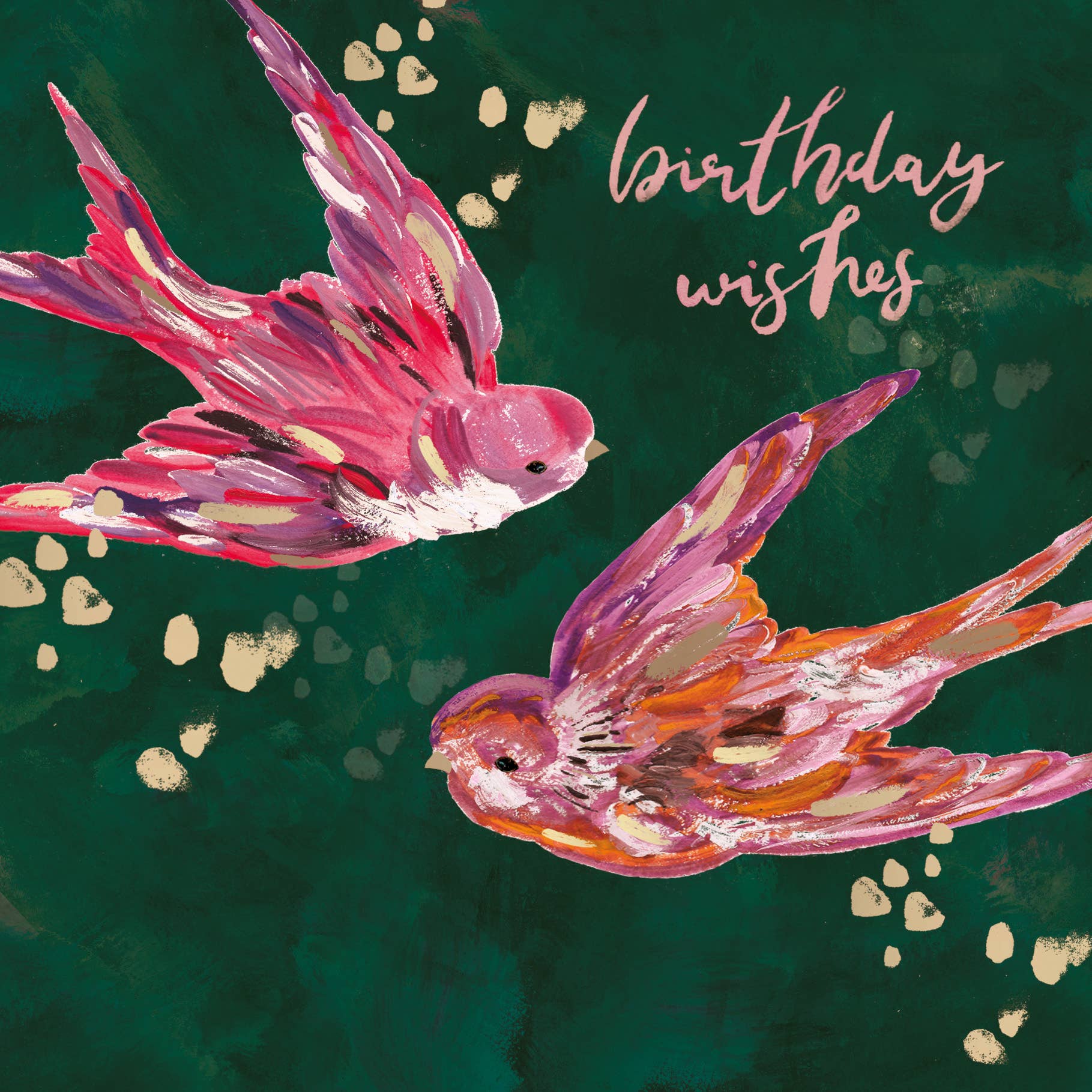 Beautifully painted, this stunning and dreamy collection captures beauty in nature and brings it into your home. Deep mulberry, forest green, dark teal and light pinks are paired with soft satin gold foil. Each card is complimented with a luxury, heavy-weight envelope, perfect for special birthdays.