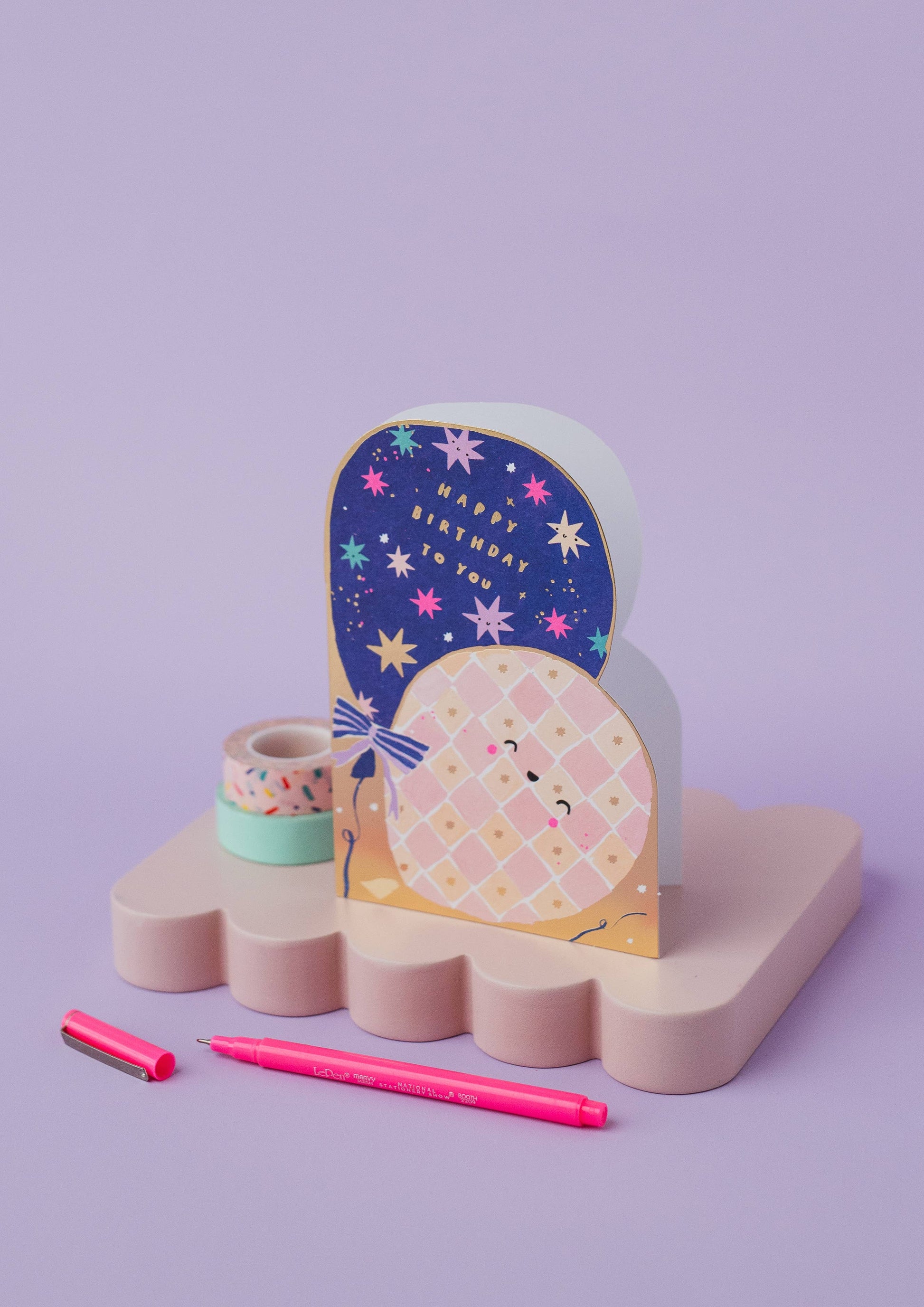 Mochi is cute as can be, with little faces lighting up each card! Whether you’re a foodie, coffee-lover, ale-enthusiast or just love birthdays these pho-nominally fun cards are die-cut, foiled and printed with either neon pink ink or a red pantone. Paired with a luxury white envelope.