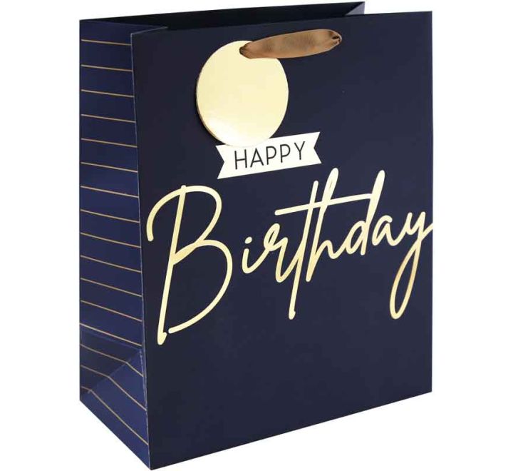 NAVY HAPPY BIRTHDAY MEDIUM GIFT BAG