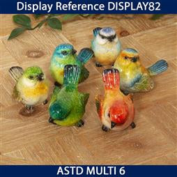 An adorable and colourful collection of 6 hand painted resin bird figurines. From Naturecraft - the one stop shop for wildlife enthusiasts. The collection features: - 1 x green - 1 x green & yellow - 1 x green & blue - 1 x blue & orange - 1 x red & orange - 1 x blue, yellow and white Each bird is hand painted and cast from a handmade clay mould.