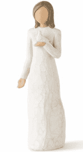 Hand-crafted and painted by artisan Susan Lordi, this heartfelt With Sympathy figurine by Willow Tree depicts a young girl holding a white dove. Exhibiting the signature soft palette and textured finish of the Willow Tree figurines, this is a simple and loving figurine perfect for home display.